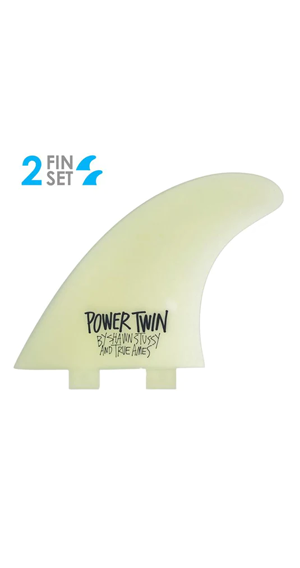 ( Twin-Fin Set ) FCS Compatible, Flat Inside Foil: The Stussy Power Twins are foiled from solid fiberglass and feature a stiff and powerful flex which has been honed in for... you guessed it... maximum POWER! This well-balanced template is the perfect complement to any progressive or performance twin fin shape. We're pleased to offer this latest model from Shawn which is the result of years of experience and shaping knowledge.