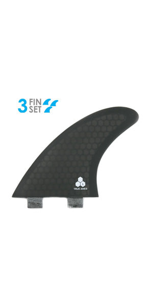 "High rake and lots of area throughout, this template favors power surfers and performs well in solid sized conditions. All 3 fins are the same size and originate from the glass-on fins which True Ames used to produce for nearly all of the Channel Islands boards back in the 80's an early 90's. Needless to say, these fins are tried and true and are still one of our prized classic and timeless designs."