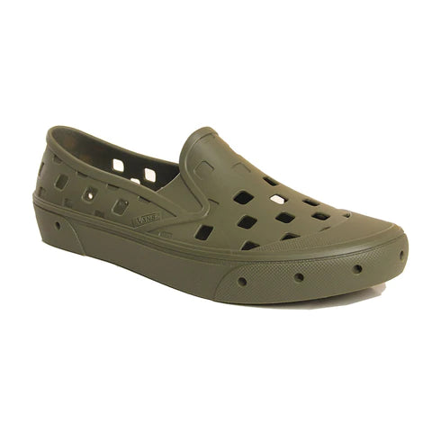 Introducing the first go anywhere, do anything, rinseable Slip-On Sandals aren’t for everyone, but wearing shoes to the beach isn’t always ideal, either—and that’s why we’ve welcomed the Slip-On TRK to the Vans family. Just go surf, rinse, then repeat. Taking the Classic Slip-On silhouette to a whole new level, the Slip-On TRK combines all the Vans DNA that you know and love with a durable, single piece injected construction, deconstructed checkerboard drainage holes for breathability, and an oversized reverse waffle sole for incredible traction in any situation. Designed to be lightweight and fully rinseable, the Slip-On TRK is easy to pack for your next adventure, so you can slip-on and on and on… • BIG-TIME TRACTION - Improved traction for any situation, thanks to the oversized reverse waffle sole. • BREATHABLE AND RINSABLE - Drainage holes mean that whatever goes in goes right back out. • A ONE-PIECE, SOLID, DURABLE DESIGN - A single-piece injected construction makes the Slip-On TRK collapsible and packable, as well as durable.