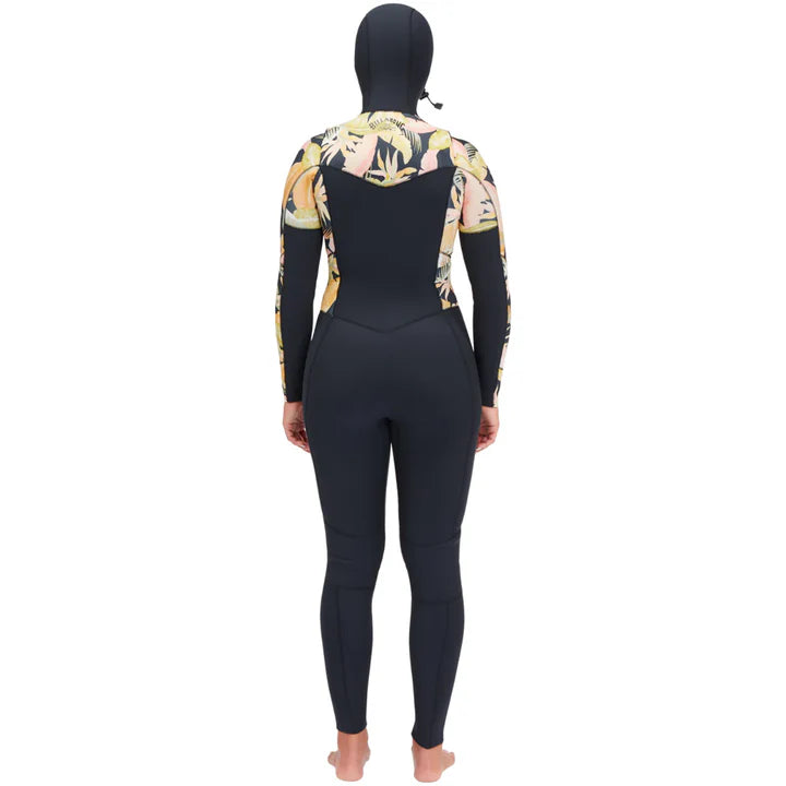 tand out in the line-up with signature style and progressive performance. Equipped with Billabong wetsuit technology, including a chest zip and Graphene Recycler thermal lining at the internal chest and back panels, combined with silicon stretch lining at the lower legs and sleeves, the Surf Capsule Collection women’s full suit is customized with palm printed panels. Combining style, performance, and sustainability, the 4/3 Salty Dayz Hooded Full Wetsuit is now made with stretchy and eco-conscious Superlight neoprene and water-based adhesives.