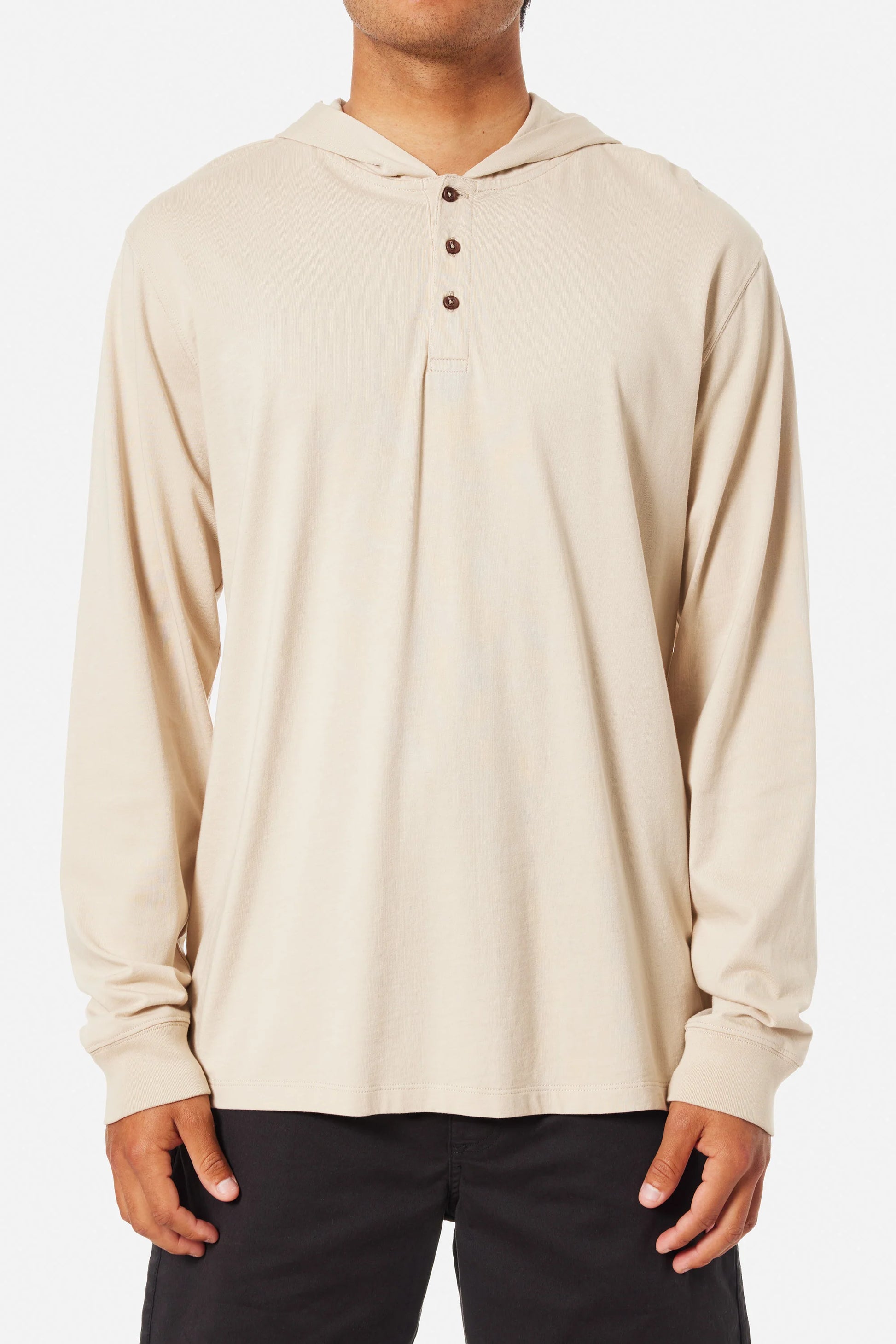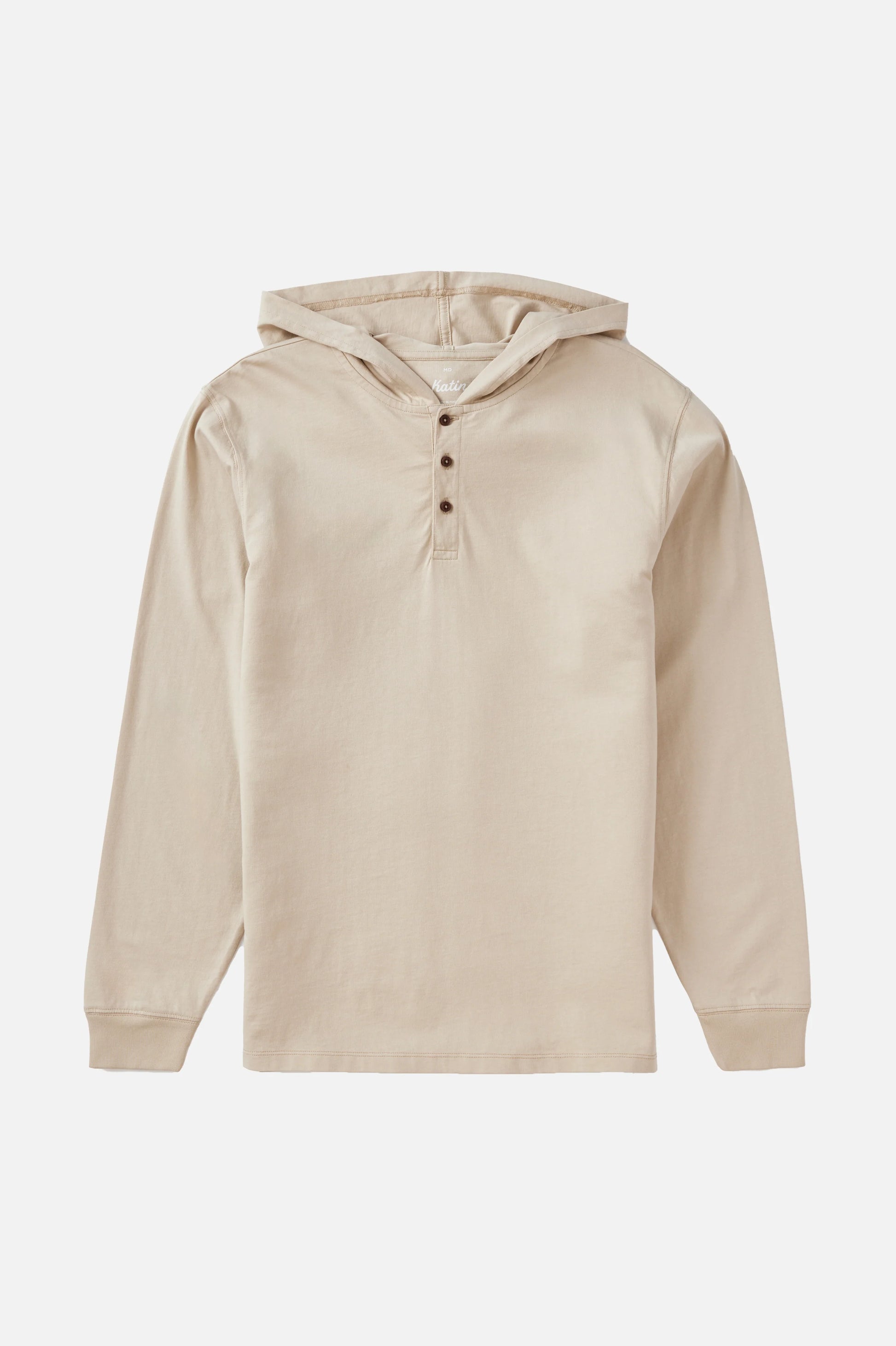 The Mesa Hide Pullover is made from a custom dyed 100% cotton jersey and features a three-button placket and pullover hood.